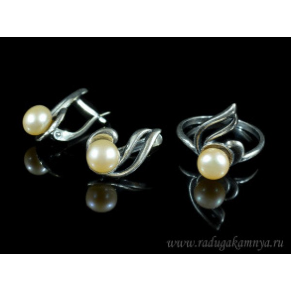 Кольцо и серьги с жемчугом кремовым