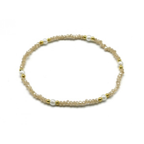 • Браслет из циркона с майоркой шарик гр.2мм цвет кремовый (иск.)