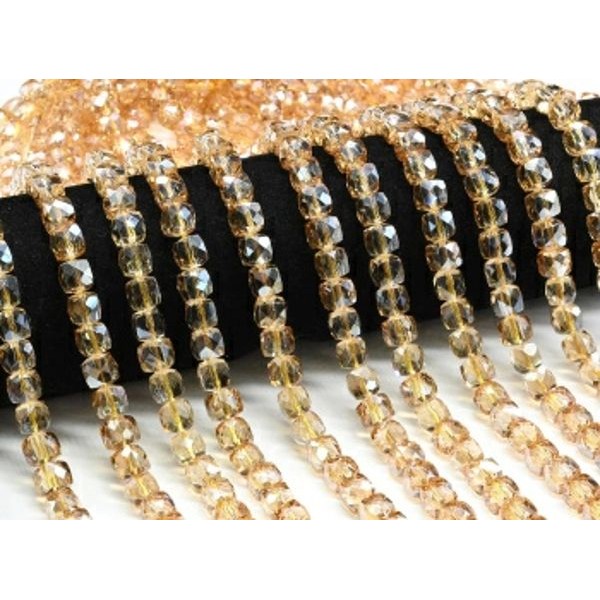Бусины из чешского стекла кубик гр.8мм цвет песочный, 39см, 49 бусин (иск.)