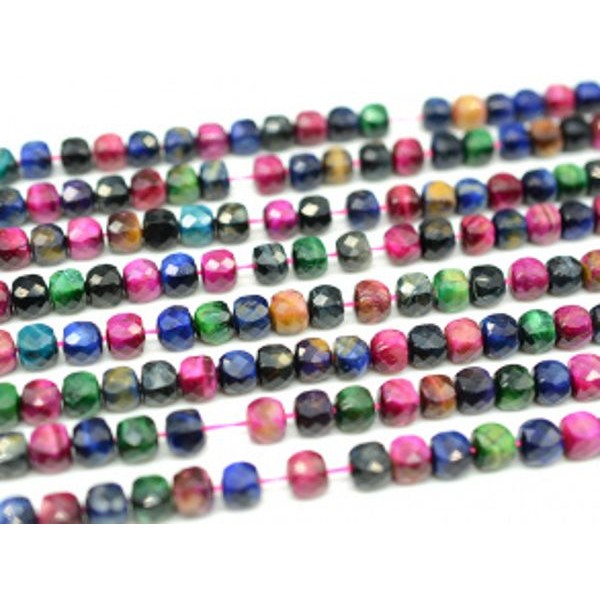 Бусины из тигрового глаза гуммигут кубик 10мм, цвет микс 38см, 39 бусин,