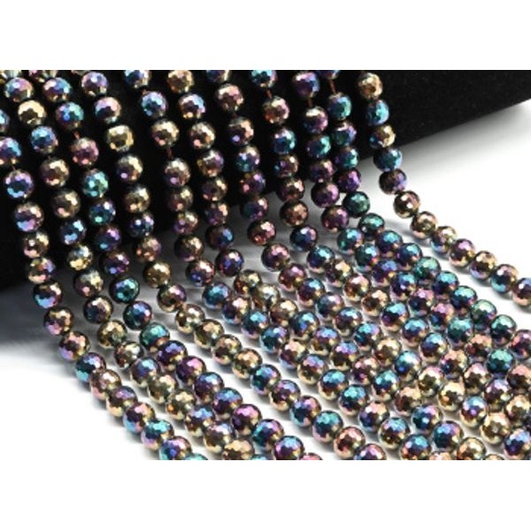 Бусины из циркона шарик гр.8мм цвет шоколадный хамелеон, 40см, 55 бусин (иск.)
