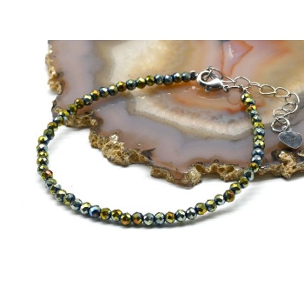 Браслет из циркона шарик гр.3мм цвет золотисто-зеленый, 18см (иск.)