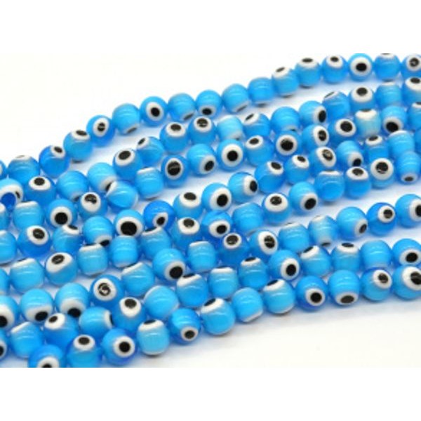 Бусины от сглаза из муранского стекла шарик 10мм цвет голубой, 33,5см, 34 бусины