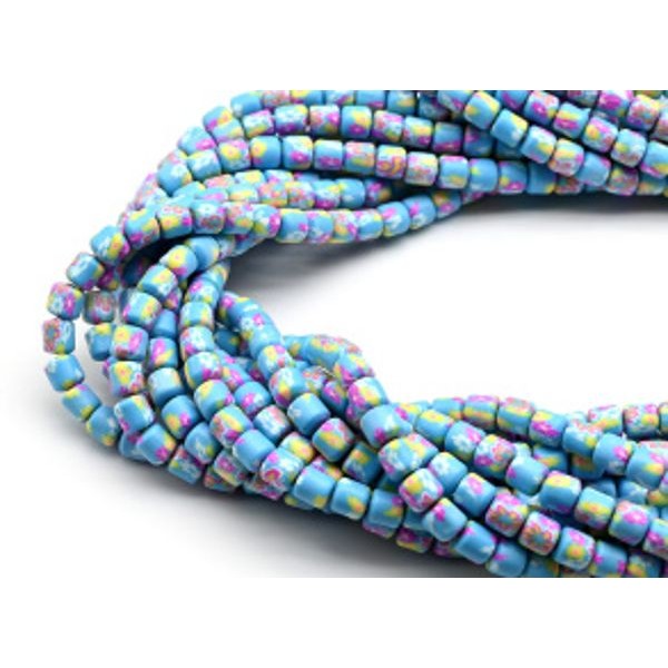 Бусины из каучука цилиндр 6*6мм с принтом, цвет голубой, 40см, 63 бусины