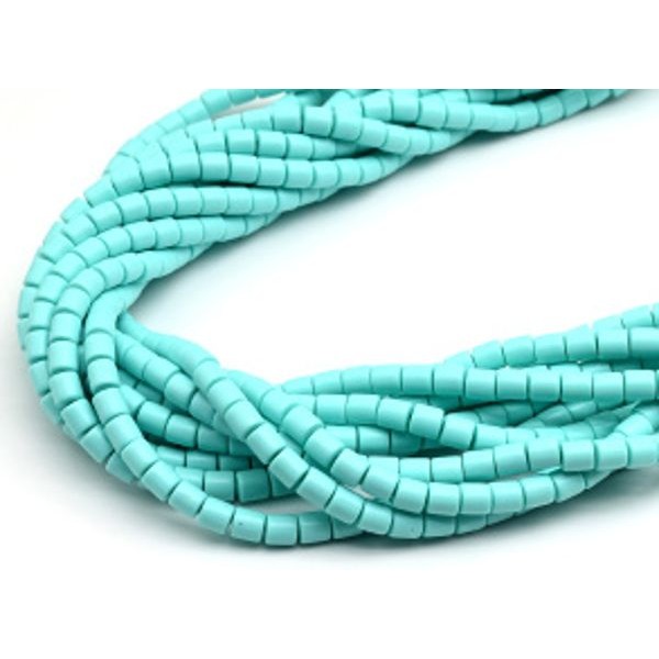 Бусины из каучука цилиндр 6*6мм, цвет бирюзовый светлый, 40см, 63 бусины (иск.)