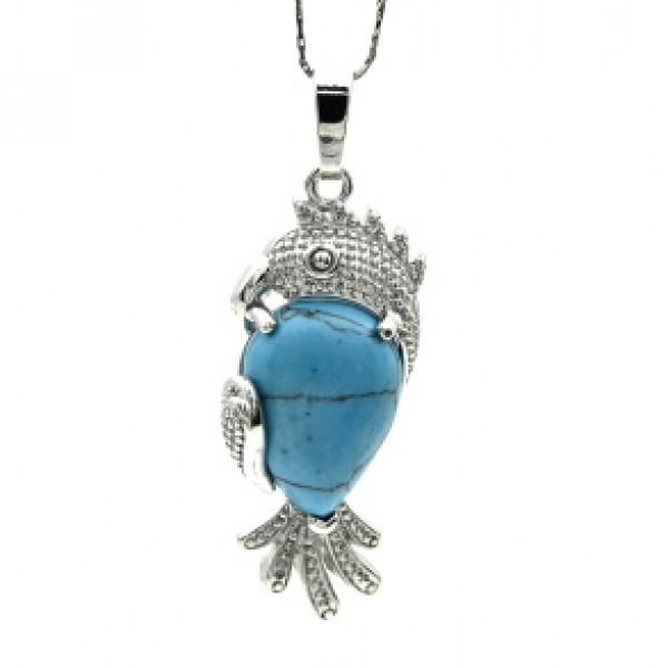 • Кулон в металле "Попугай" 15*35мм с бирюзой искусственной (иск.)