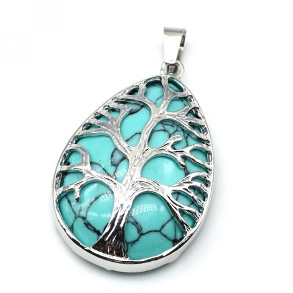 Кулон Дерево на капле 26*39мм с бирюзой (иск.)