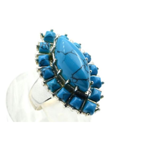 Кольцо С 925 с бирюзой (имитация) рис в кубиках 16*27мм , 7,92гр (иск.)