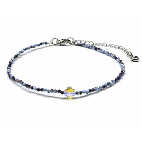Браслет на ногу из циркона шарик гр.2мм, цвет серо-голубой, 21см (иск.)