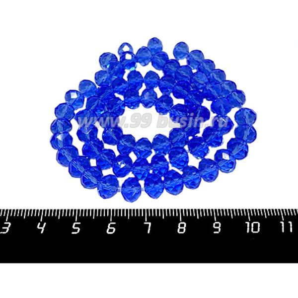 Бусина хрустальная на нитке 8*6 мм тёмно-синий прозрачный около 40 см/нить