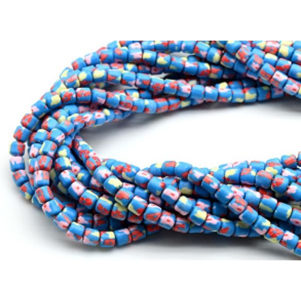 Бусины из каучука цилиндр 6*6мм с принтом, цвет синий, 40см, 63 бусины