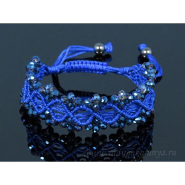 Браслет плетеный с цирконами синий