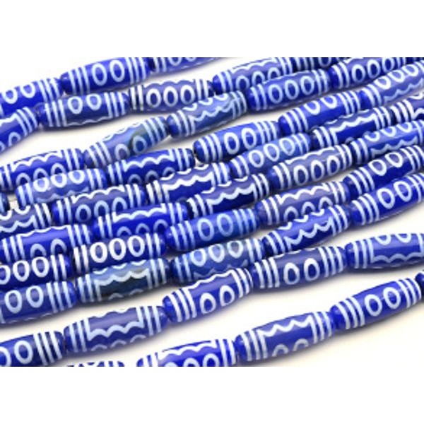 Бусины Дзи "Пять глаз" из агата бочонок 10*30мм, цвет синий, 29см, 10 бусин