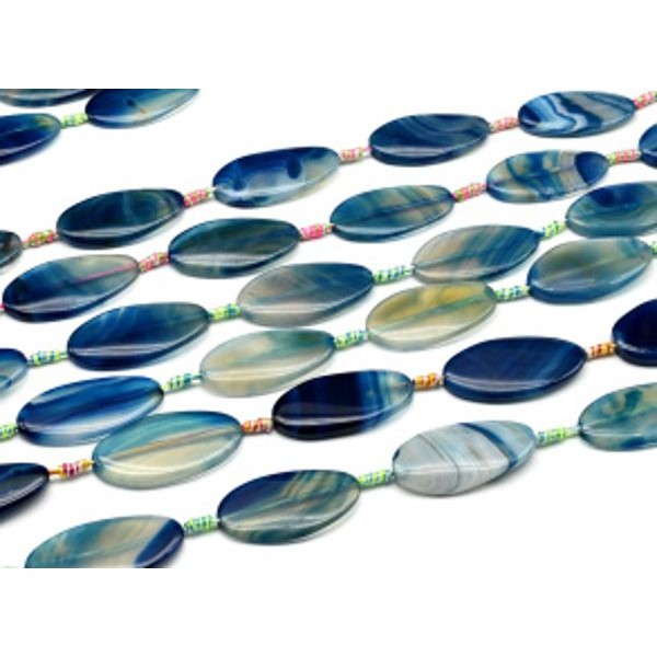 Бусины из агата тонированного т.овал 25*50мм цв.синий, 42см, 7 бусин