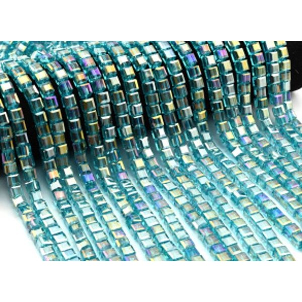 Бусины из циркона кубик гр.7*7мм цвет лазурный хамелеон, 40см, 55 бусин