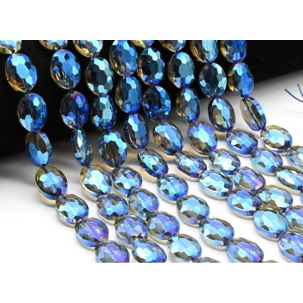 Бусины из циркона овал гр.12*16мм цвет синий, 40см, 25 бусин (иск.)