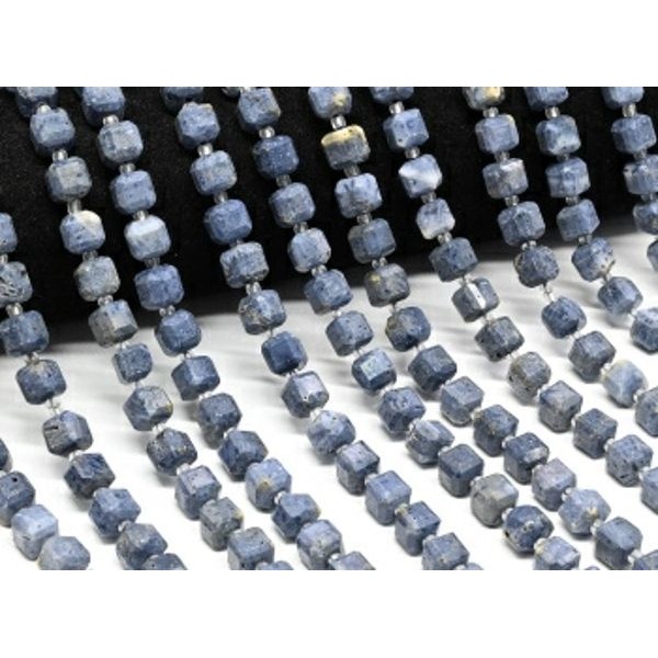 Бусины из коралла синего кубик гр.8мм, 38см, 37 бусин