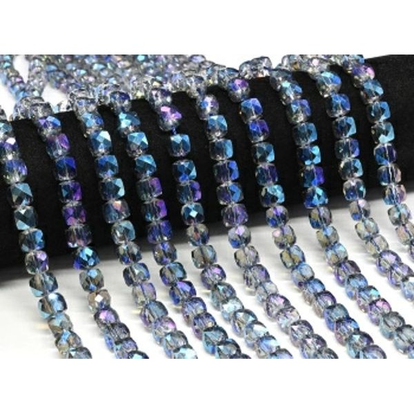 Бусины из чешского стекла кубик гр.8мм цвет синий, 39см, 49 бусин (иск.)