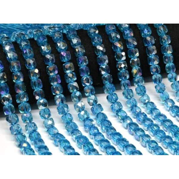 Бусины из чешского стекла кубик гр.8мм цвет лазурный, 39см, 49 бусин (иск.)
