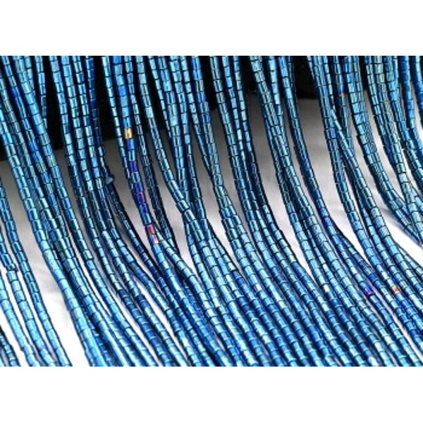 Бусины из гематита цилиндр 2*2мм цвет синий, 40см, 230 бусин