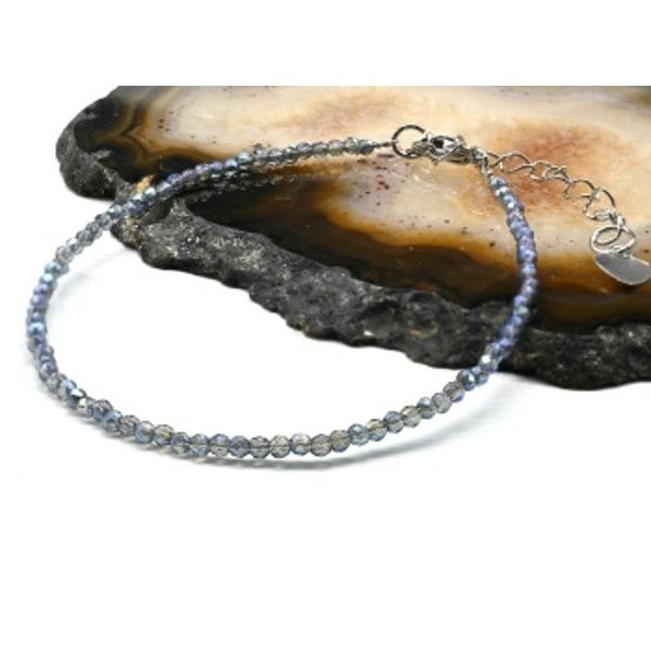 Браслет из циркона шарик гр.2мм цвет синий, 19см (иск.)