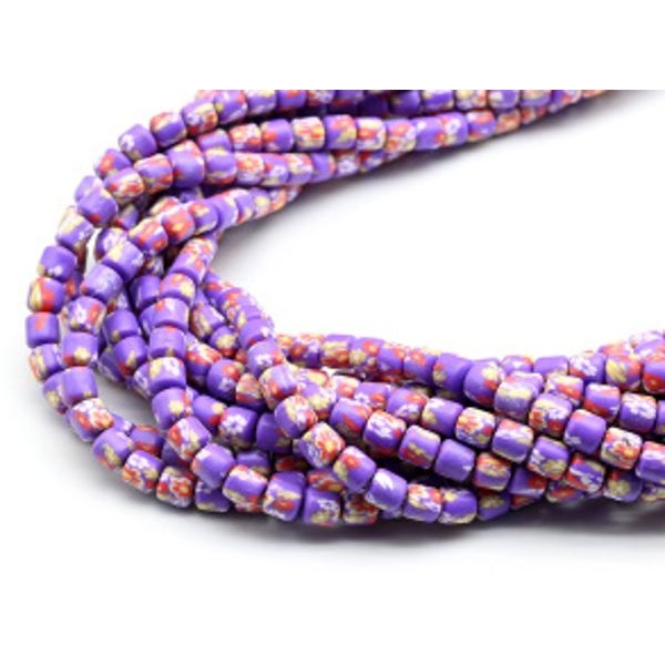 Бусины из каучука цилиндр 6*6мм с принтом, цвет фиолетовый, 40см, 63 бусины