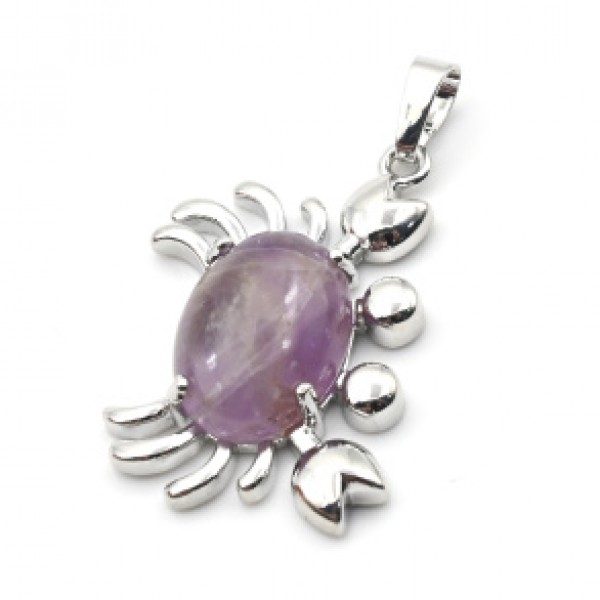 • Кулон с аметистом "Краб" 22*34мм в металле