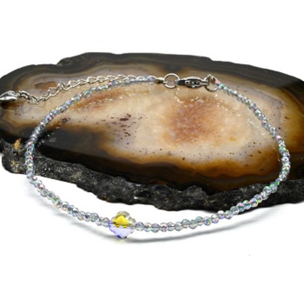 • Браслет на ногу из циркона шарик гр.2мм, цвет сиреневый хамелеон, 21см (иск.)