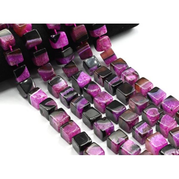 • Бусины из агата тонированного кубик 15мм, цвет фуксия, 41см, 20 бусин