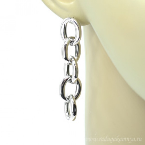 Серьги Южная Корея 14*62мм серебристые, 9г (иск.)