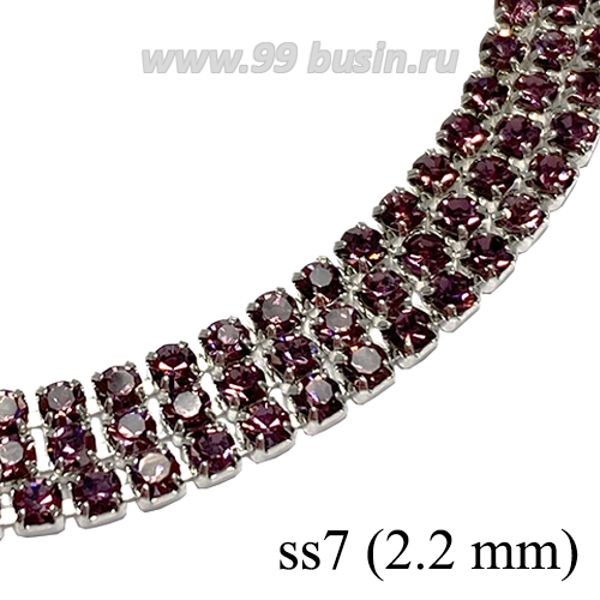 Стразовая цепочка 2.2 мм (ss6) цвет светлый аметист/серебристый 0,5 метра