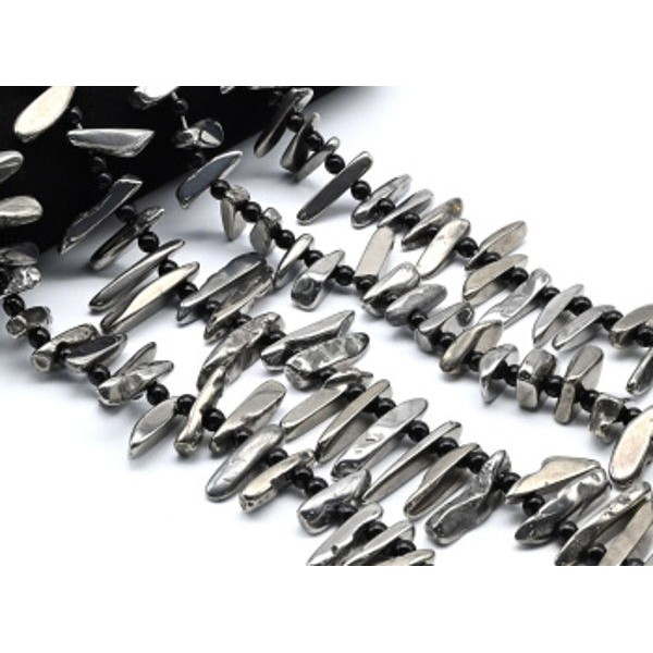 • Бусины из агата тонированного галтовка 10*20мм цвет серебристый, 40см, 32 бусины