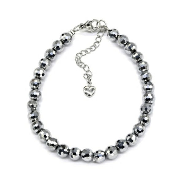 Браслет из циркона шарик гр.6мм цвет серебристый, 18см (иск.)