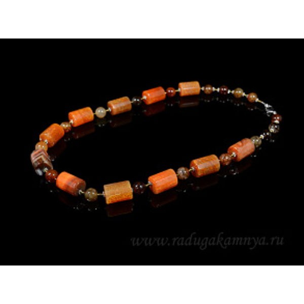 Колье из агата пати тонированного цилиндр с гранями 14*20мм шарик 10мм рыжий, 55см