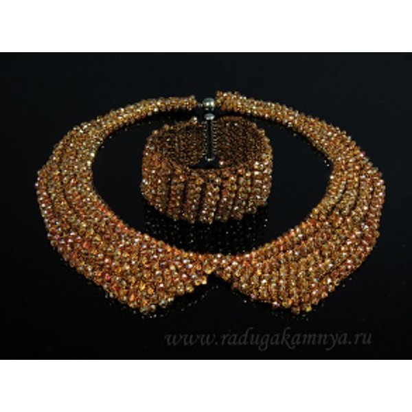 Колье-воротник и браслет из циркона плетение цвет рыжий, 45см, 18,5см