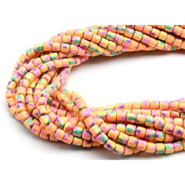 Бусины из каучука цилиндр 6*6мм с принтом, цвет оранжевый, 39см, 62 бусины