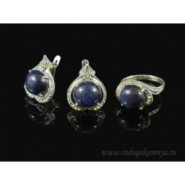Кольцо и серьги с авантюрином синим (имитация)