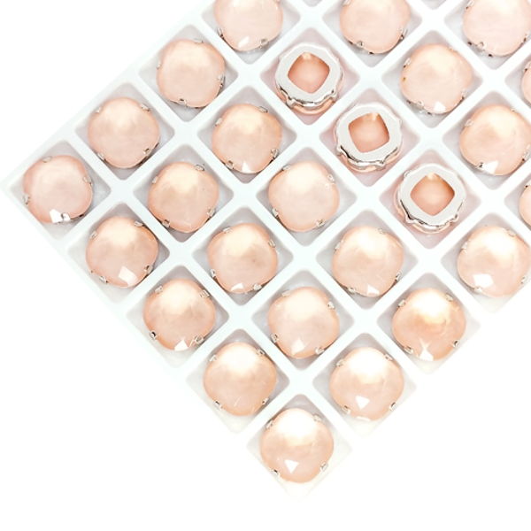 Стразы Кушон Премиум МОКА (Лаковые) 10*10 мм цвет светлый персиковый, оправа никель, 1 шт.