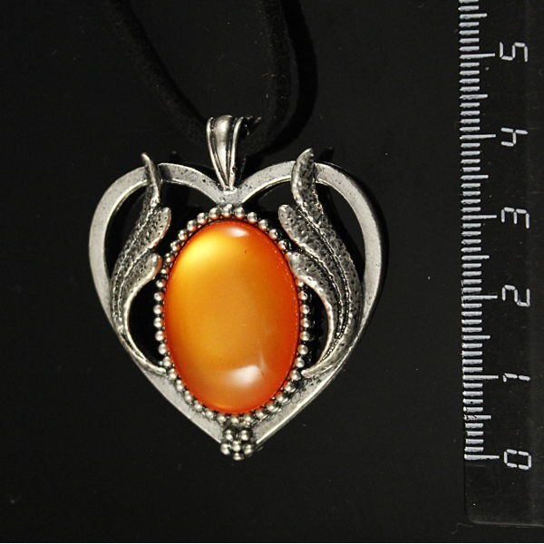 Кулон из кошачьего глаза (синт.), цвет тёмно-оранжевый, овал 25х18мм, "сердце с крыльями"