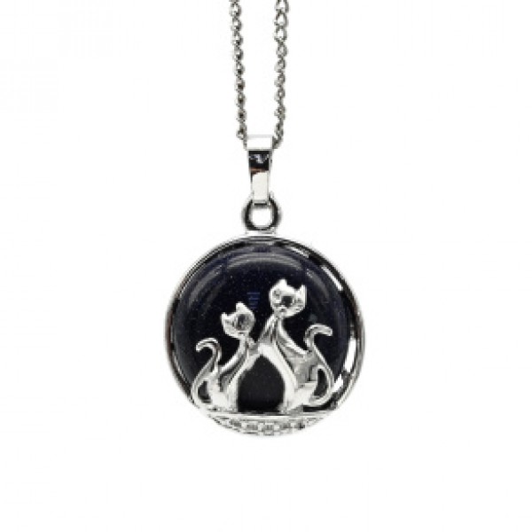 Кулон коты 22*22мм в металле с авантюрином синим (иск.)
