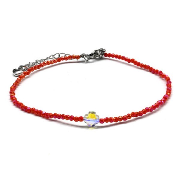 Браслет на ногу из циркона шарик гр.2мм, цвет оранжевый, 21см (иск.)