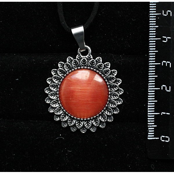 Кулон из кошачьего глаза (синт.) темно-оранжевого "подсолнух", круг 20мм