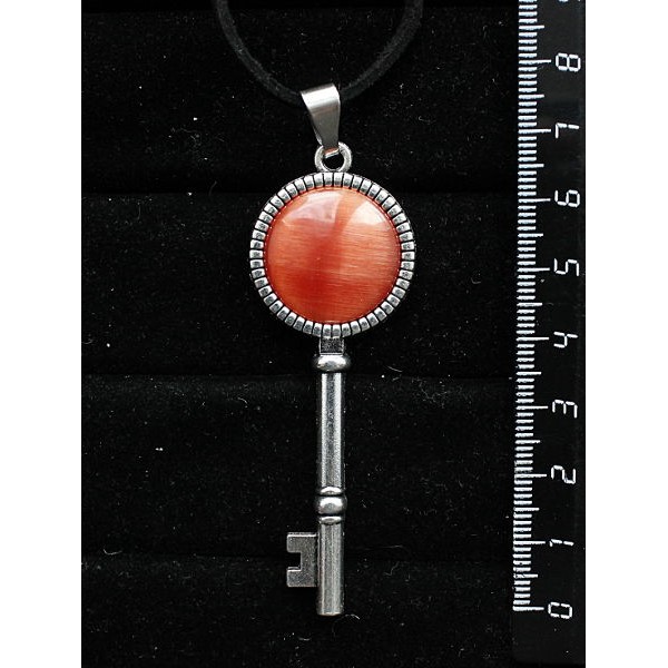 Кулон из кошачьего глаза (синт.) темно-оранжевого "ключик", круг 20мм
