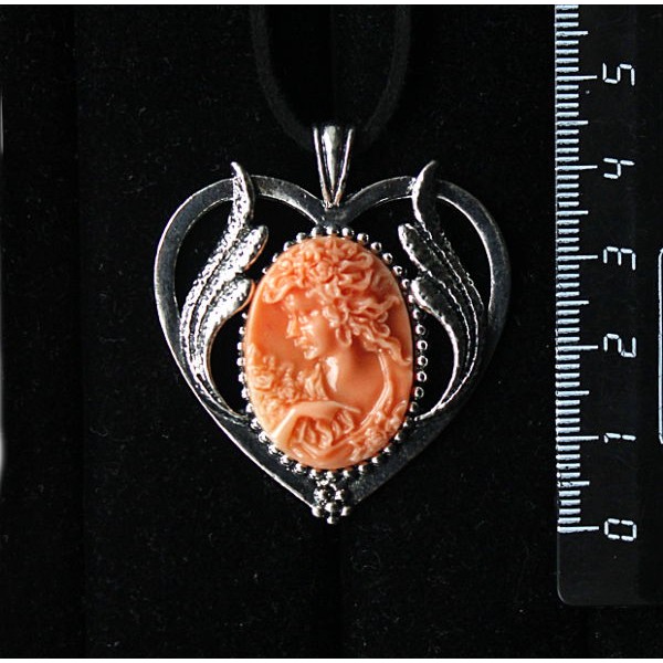 Кулон из крафтовой смолы, цвет оранжевый, кабошон "камея", овал 25х18мм, "сердце с крыльями"