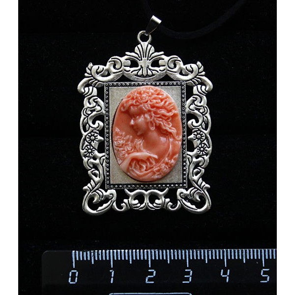 Кулон из крафтовой смолы, цвет оранжевый, кабошон "камея", овал 25х18мм, "императрица"