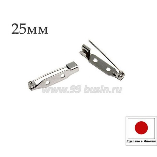 Основа для броши с крючком 25 мм, цвет никель, 2 отверстия, произ-во ЯПОНИЯ