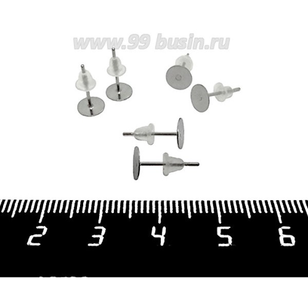 пусеты с круглой площадкой 6 мм, с силиконовыми заглушками, нержавеющая сталь, 3 пары/упаковка