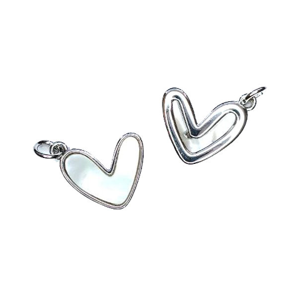 • Подвеска Премиум Весёлое сердце с перламутром 16*14 мм, цвет родий 1 штука