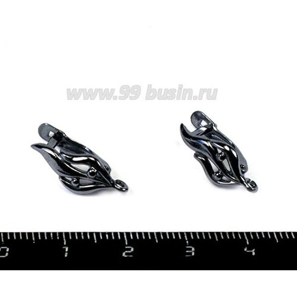 Швензы ювелирные Пламя 18*10 мм, чёрное оксидированное посеребрение 12 мкн, гипоалергенные, пр-во Россия 1 пара