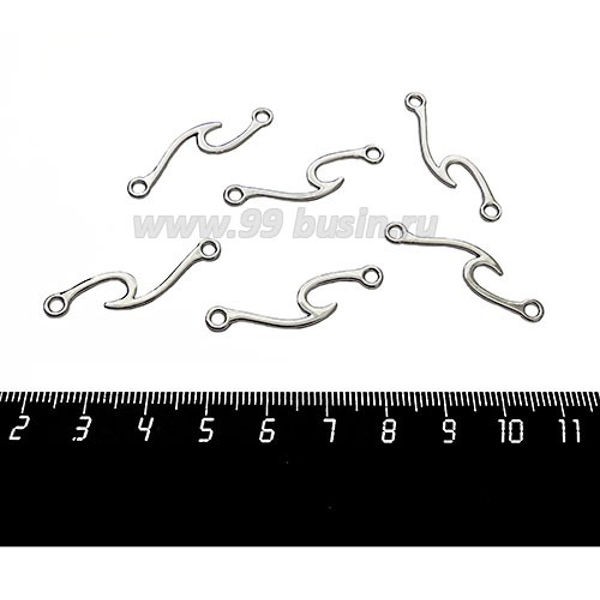 Коннектор Росчерк 33*9 мм 2 петли, цвет серебро 6 штук/упаковка